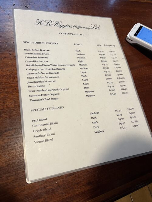 こちらは長い歴史を持つお店で、故エリザベス女王も愛したコーヒ&紅茶の専門店です。