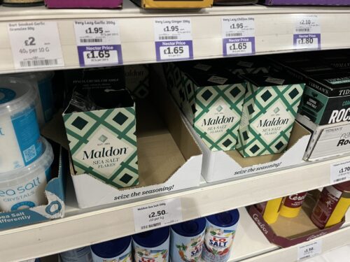 Maldon”という粗塩です✨こちらは、イギリス駐在妻さんがオススメお土産を紹介するブログを見て事前にチェックしておりました。