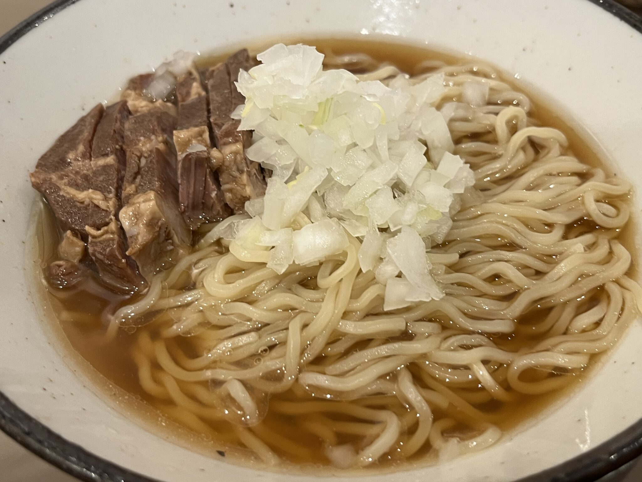 麺と玉ねぎ・チャーシューなどのお好みの具材を乗せて完成です✨
