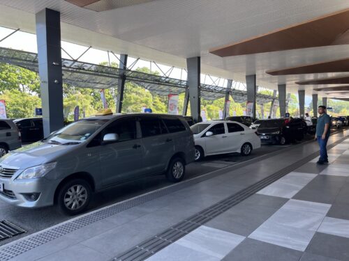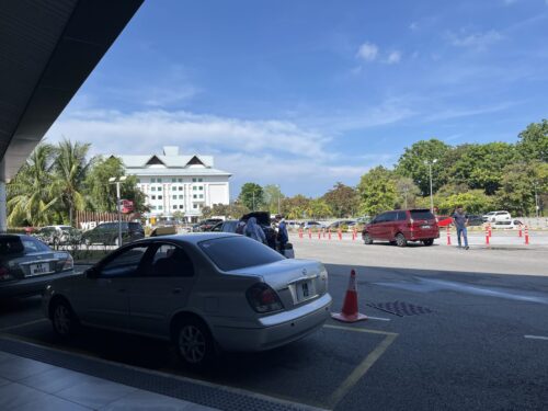 空港の外を出ると目の前に送迎車を待機するレーンがあります。