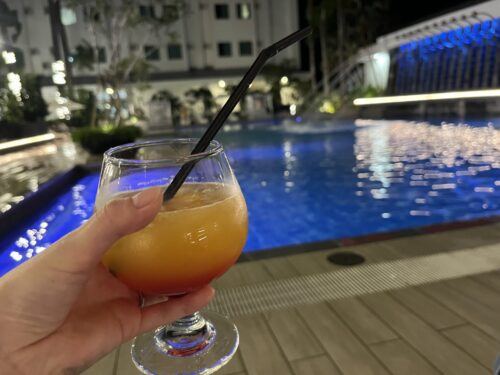 宿泊者限定でドリンクチケットをいただいたので、プールサイドで嗜ませて頂こうと思います🙌