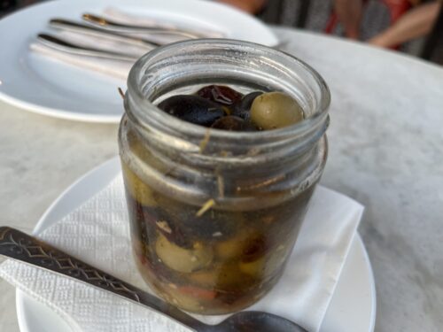 日本でのランチ並みにお値段がお得だったので、ottoはツマミとしてオリーブを、私はデザートにクレームブリュレを追加注文しました♩