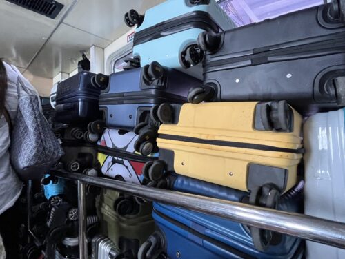 下船に向けて出口へ向かうのですが、その途中で荷物が積み上げられているのを発見👀