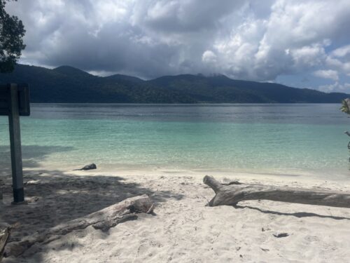 先ほどの島とは違い、こちらは白い砂浜でビーチが形成されています。