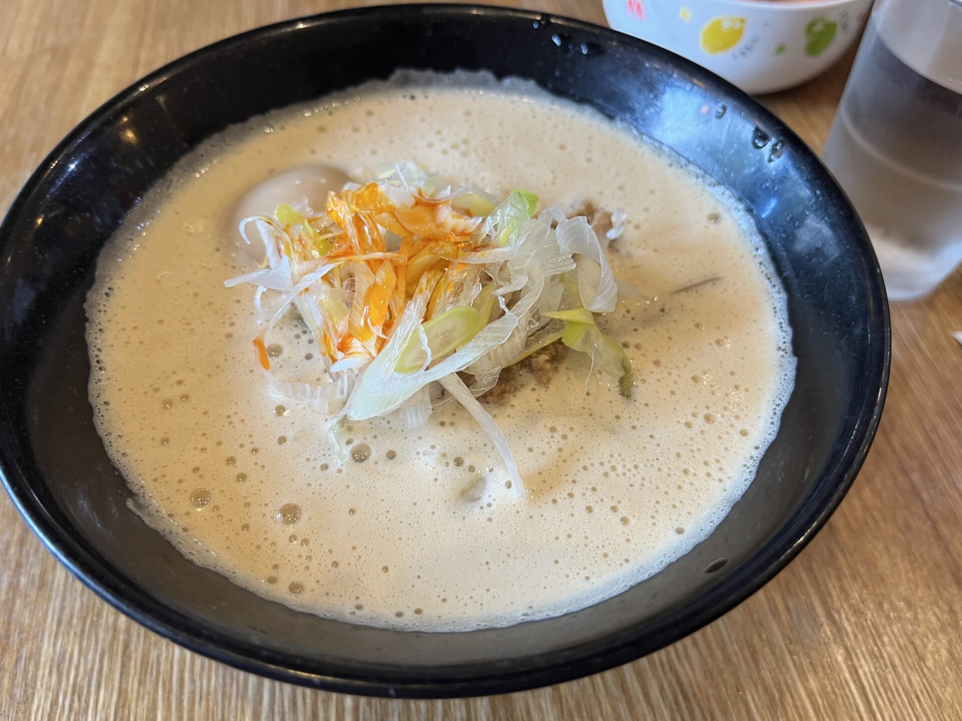 きめ細かい泡が乗った鶏白湯スープに思わず感動してしまいます。ビジュが良すぎますね。