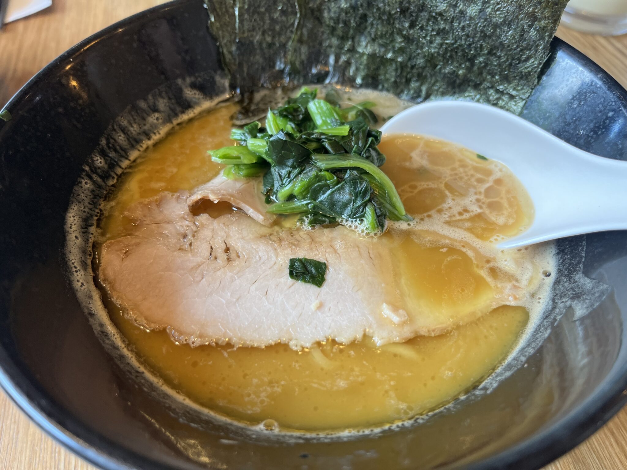 んんん!!!濃厚な豚骨にカエシのパンチ力も加わり、いい意味で粘りつくような味わい、、、家系ラーメンそのもの!