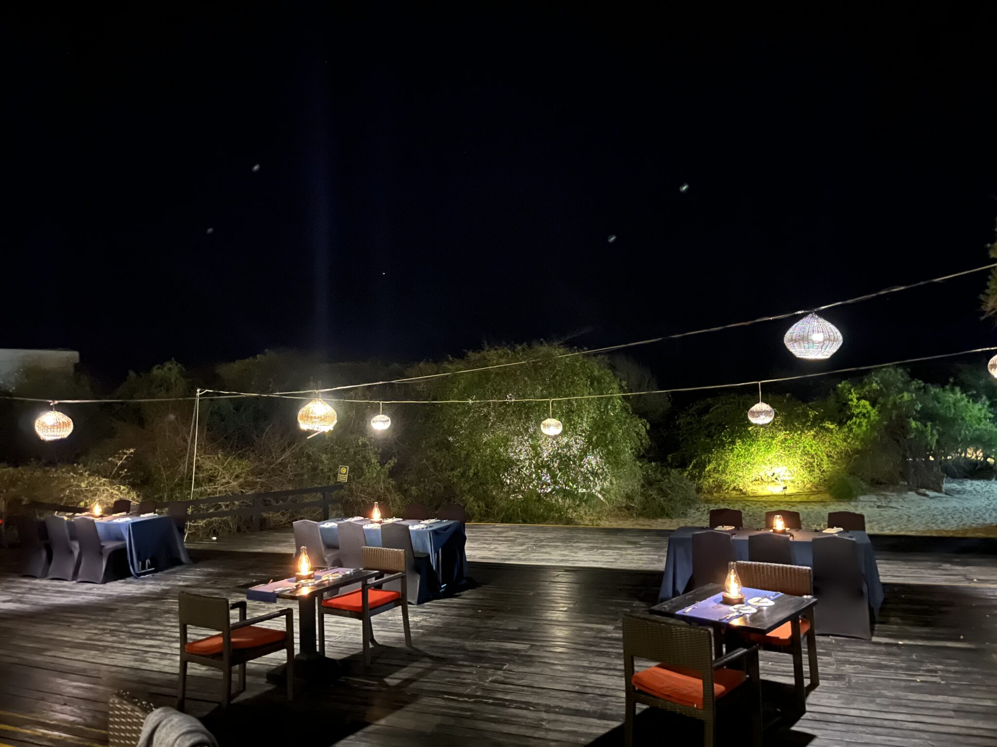 夜のテラス席はほどよく風が吹いて涼しいのです✨